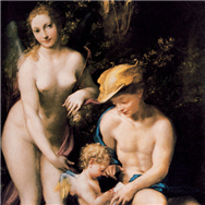 柯勒乔(Correggio,1494~1534),真名安托尼奥.阿来里,是16世纪早期的创新派画家,也是意大利文艺复兴时期最伟大的画家之一。作为壁画装饰艺术的开拓者,他画了很多颇有影响的圣坛画,还有许多小型的宗教绘画。他是以画拱形屋顶的壁画而著名的。柯勒乔可能主要是在佛朗彻斯接受培养的,后来又受北部欧洲画风的影响,不有曼坦那,科西摩以及列奥那多.达.芬奇等人也他的作品颇有影响。画名:《爱神丘比特的教育》。