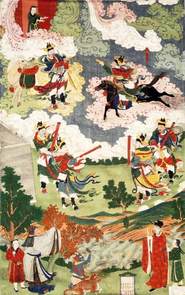 「水陆画」是中国的一种传统宗教绘画,专门用于悬挂在超度亡灵的「水陆法会」上,画面内容包括天堂人间、冥府三界,神佛菩萨,同时描绘世俗生活,是「三教合一」背景下产生发展的民俗文化现象,对研究我国佛教史、儒释道三教融合、民俗信仰、服饰变迁等都有着重要意义。