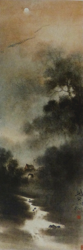 高剑父的山水气势磅礴,笔法有近似马远、夏圭一体的,横砍竖劈,干笔飞白,于秀逸中见刚劲。所作朝阳夕照,风雨晦冥,烟霞云雾之景,生动地再现了南国山川的秀丽多姿。